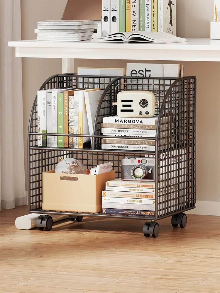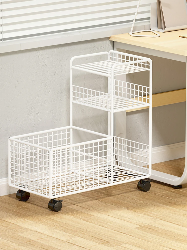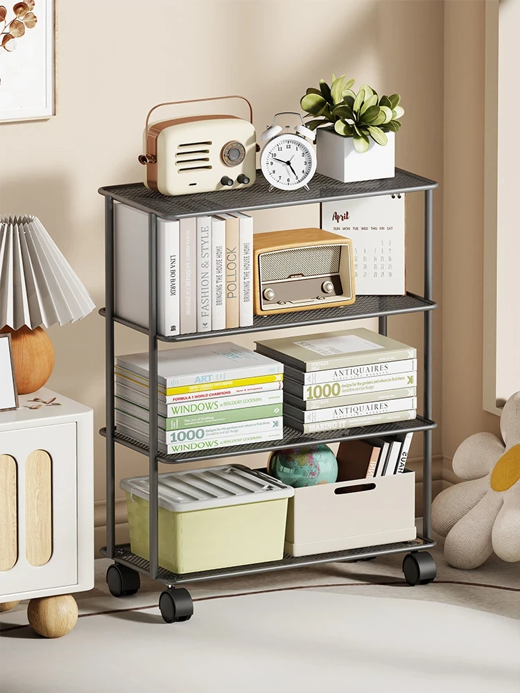 移動式子供用デスク&収納ラック - キャスター付きの多段アイアンブックシェルフで、学びの空間をおしゃれに演出!本やおもちゃを整理整頓し、子供の成長をサポートします。