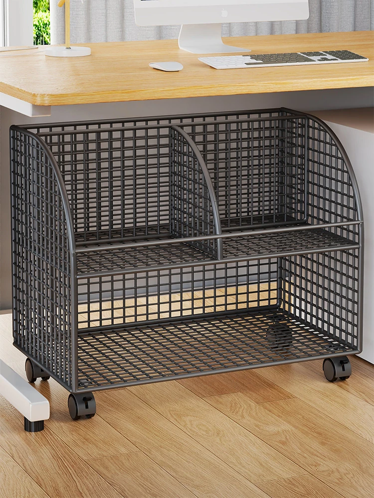 子供用デスク下収納ラック - 移動可能な小型カート付きで、本や資料をすっきり整理!ファイルや書類の収納に最適なアイデア商品。お部屋を広く使える便利アイテム!