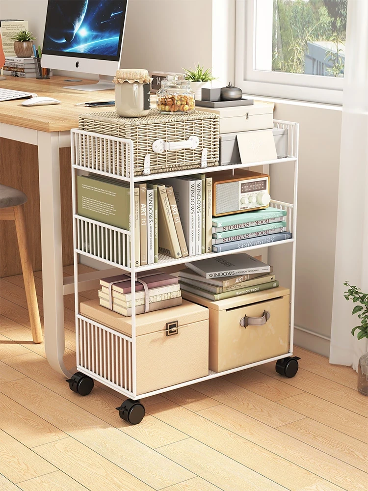 多機能デスクオーガナイザー - 移動可能なキャスター付き、子供部屋にも最適な多段デスク本棚!オフィスやリビングでスッキリ収納、使いやすさ抜群!