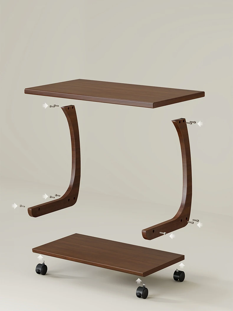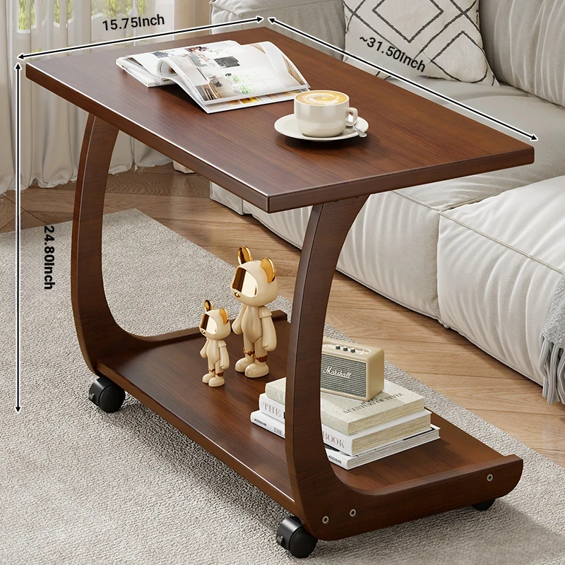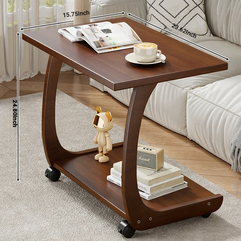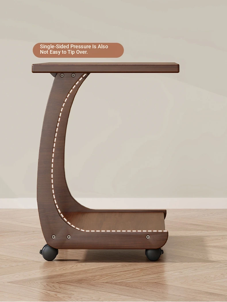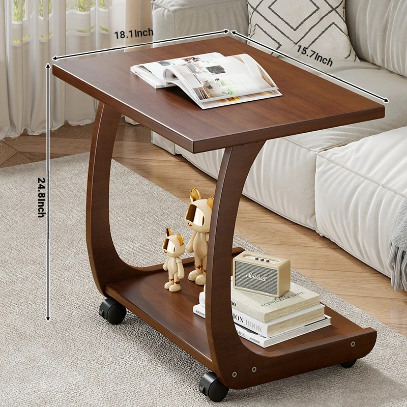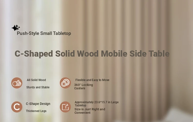 Mobile Solid Wood Side Table with Wheels - Perfect for Living Rooms and Small Spaces, Versatile C-Shaped Nightstand or Accent Table for Easy Accessibility