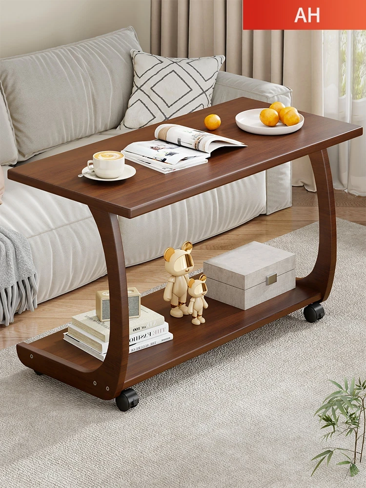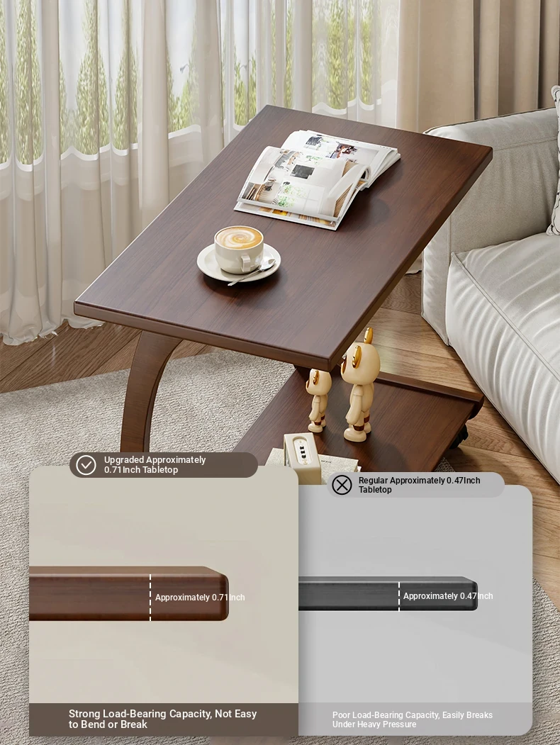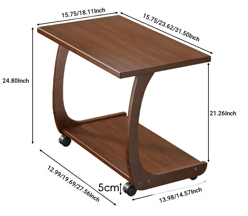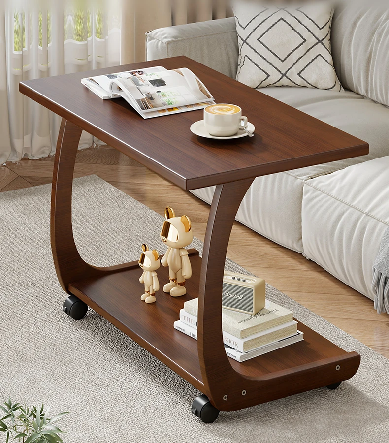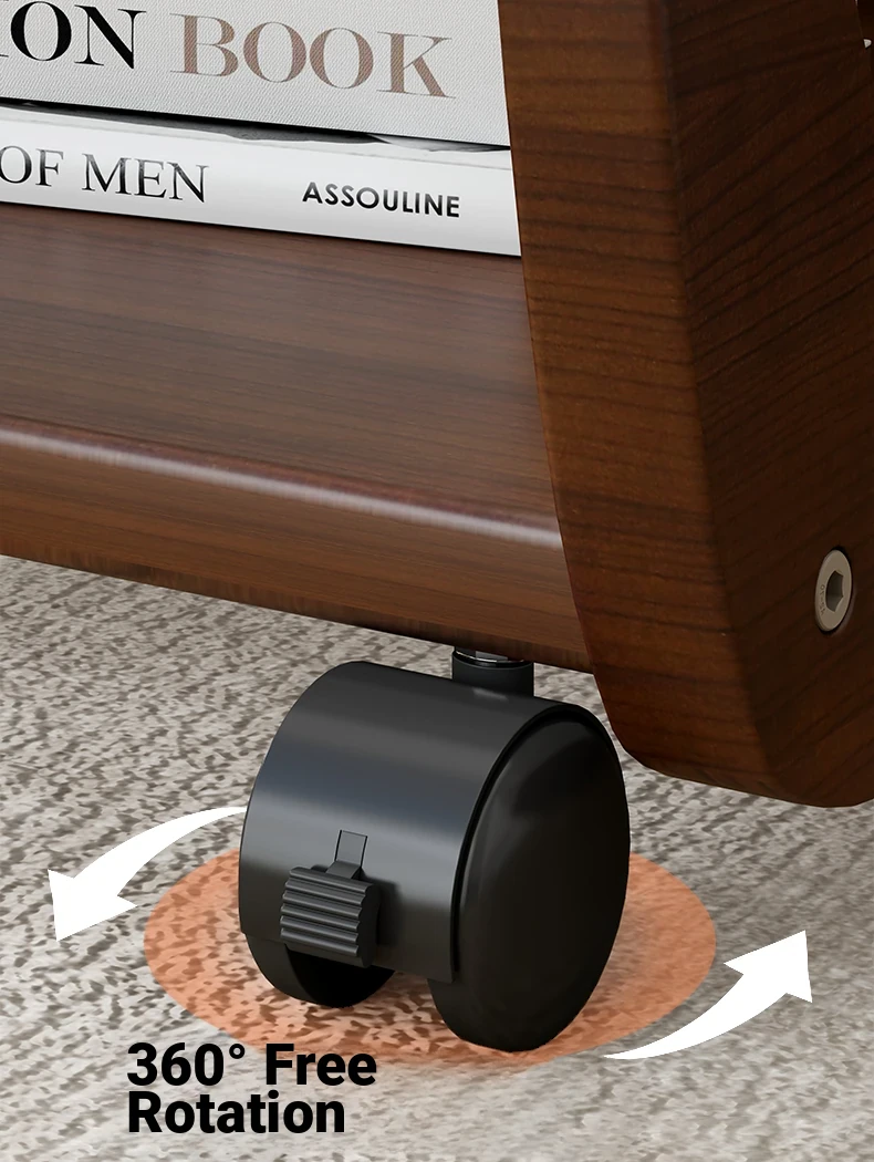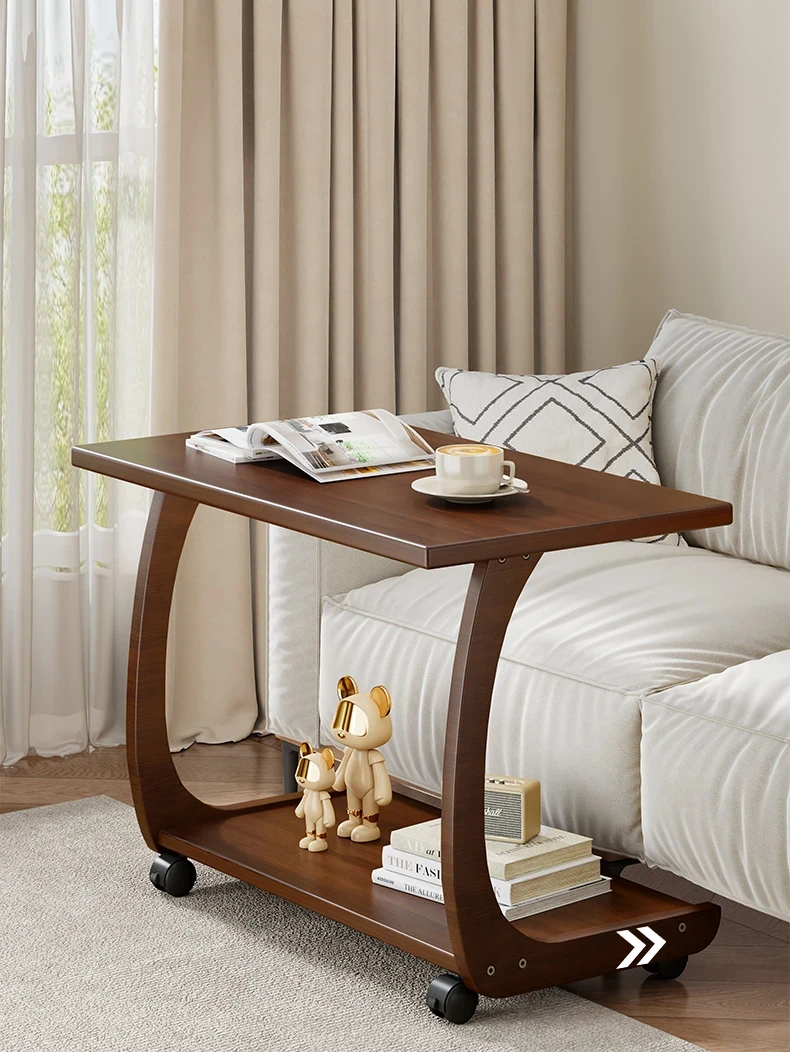 Mobile Solid Wood Side Table with Wheels - Perfect for Living Rooms and Small Spaces, Versatile C-Shaped Nightstand or Accent Table for Easy Accessibility