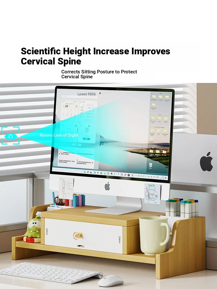 Height-Adjustable Monitor Stand for Home Office - Ergonomic Desktop Riser and Storage Solution for Laptops and Screens - Enhance Your Workspace Comfort and Organization