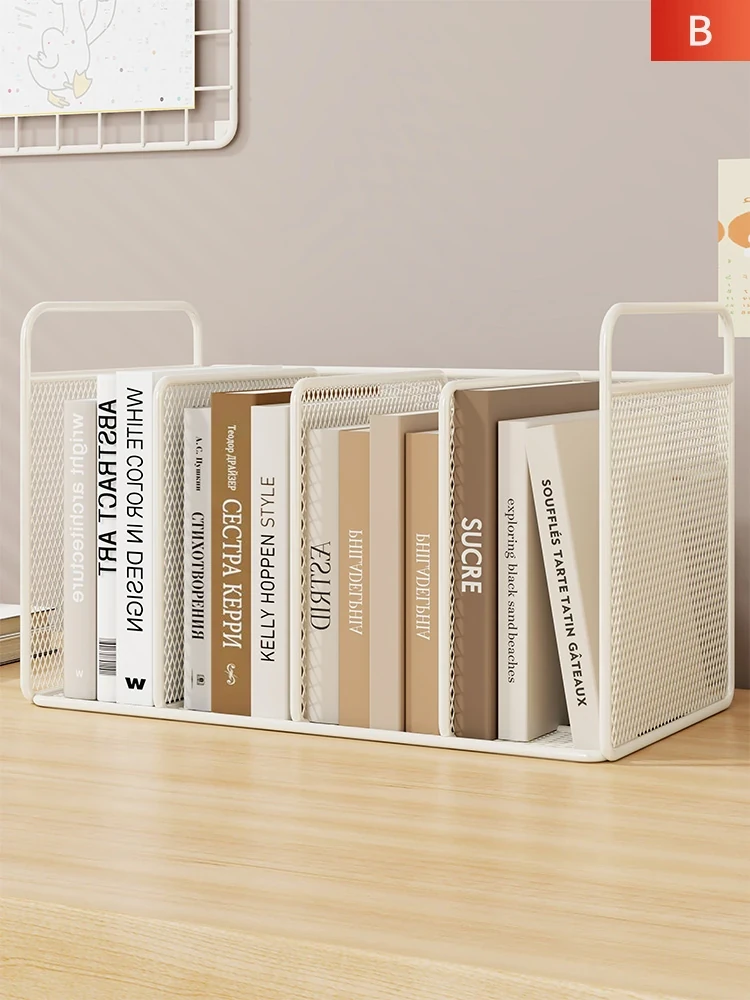 Stylish Iron Desktop Bookshelf - Vertical Book Organizer for Students, Home Office Storage Rack, Simple Tabletop Book Stand for Easy Access and Organization