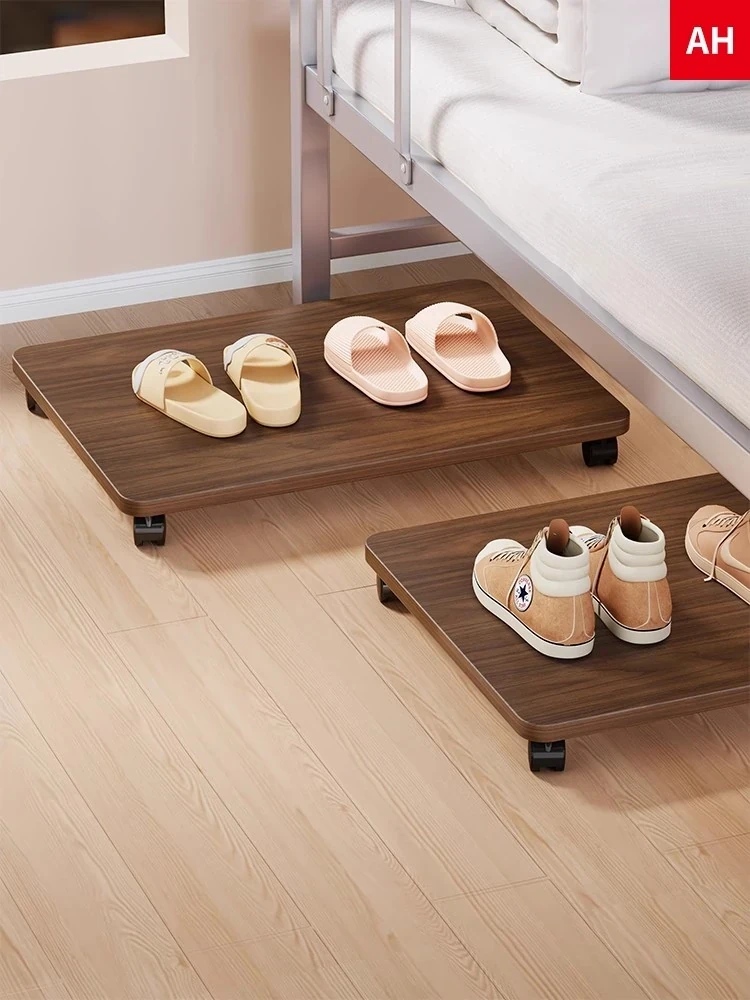 Multifunctional Solid Wood Shoe Rack with Universal Wheels - Mobile and Minimalist Under-Bed Storage Solution for Dorm Rooms and Small Spaces