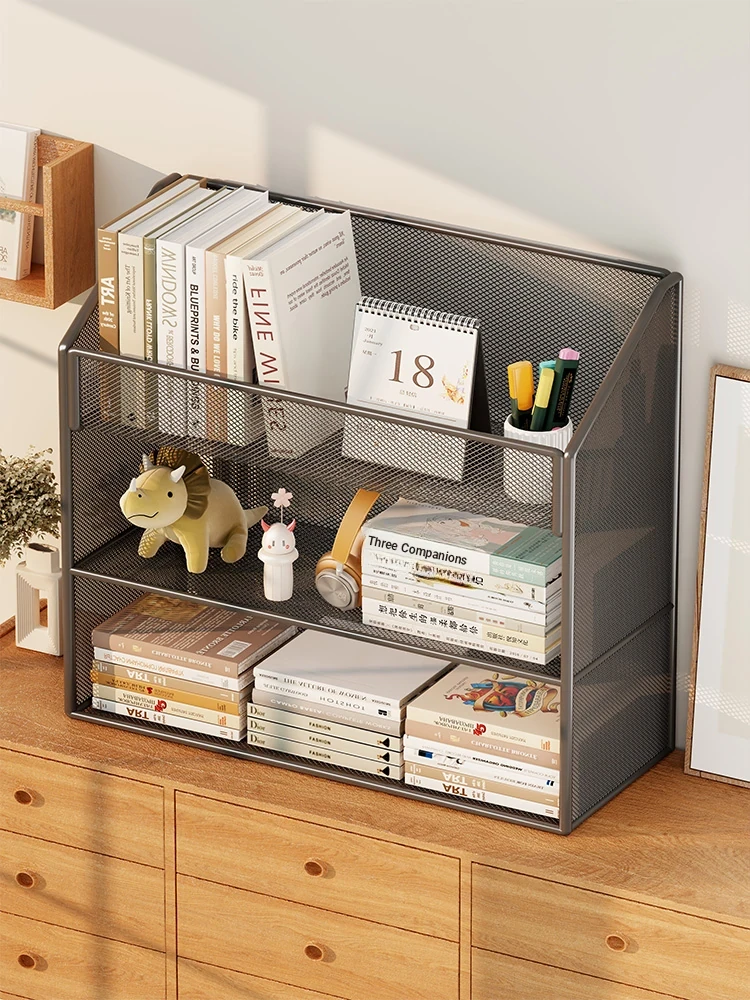 Multilayer Desktop Storage Rack – Stylish Iron Bookshelf for Office and Student Dorms, Perfect for Organizing Your Desk and Keeping Your Essentials Within Reach!