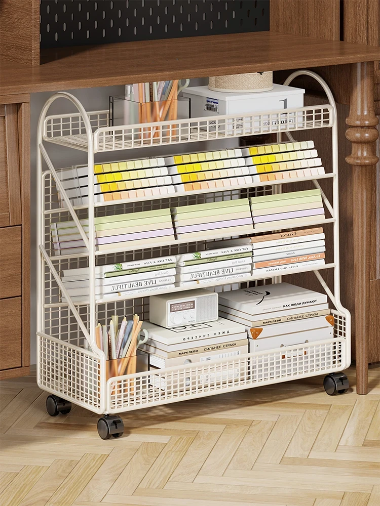 Rolling Under-Desk Book Shelf Storage Cart - Mobile Organizer for Students, Classroom Book Storage, Multi-Tier Side Cabinet for Easy Access and Neat Organization. Perfect for Keeping Your Study Space Tidy!