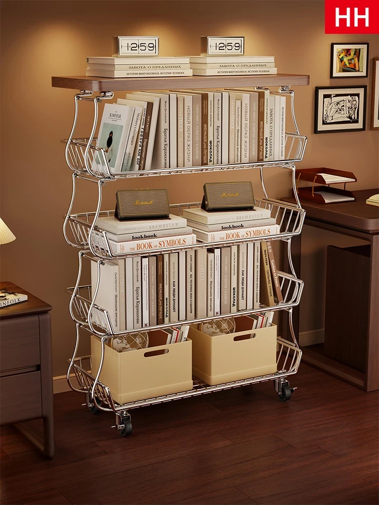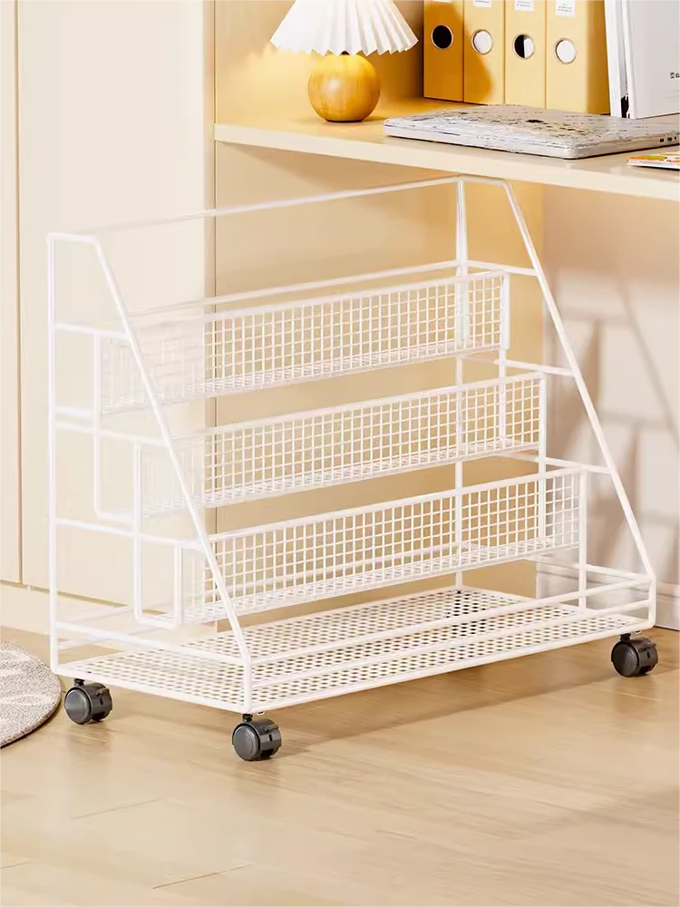 Multifunctional Floor Bookshelf - Stylish and Mobile Storage Rack for Office, Living Room & Magazine Display - Simple Multi-Layer Design Perfect for Organizing Files and Decor Items