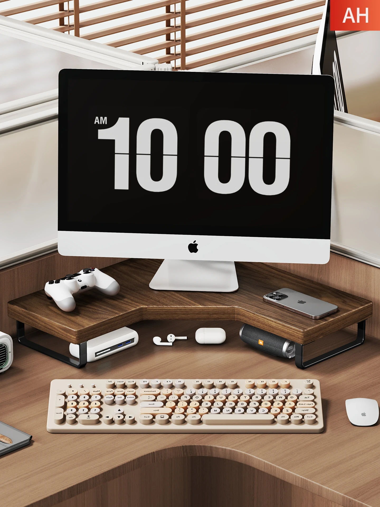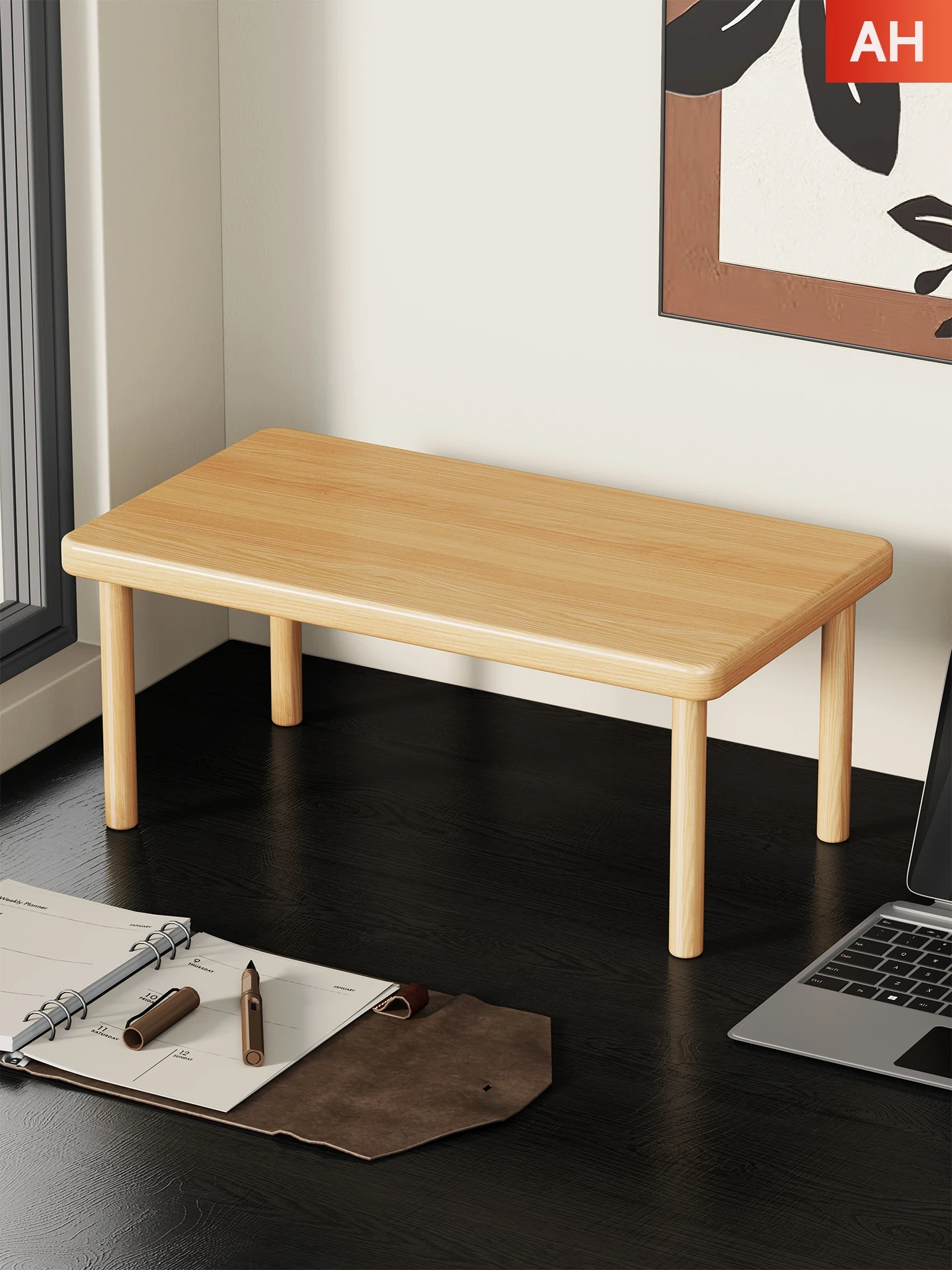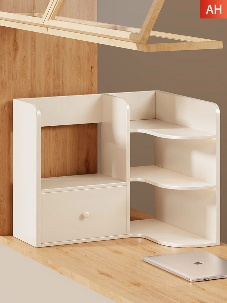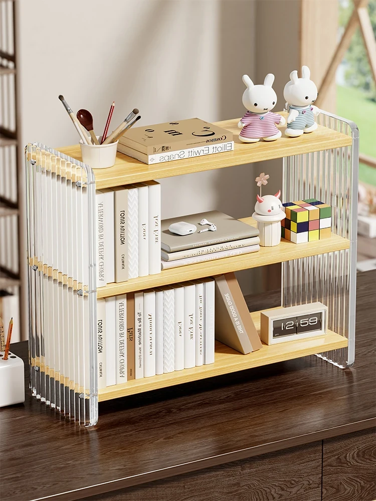Solid Wood Desktop Bookshelf - Space-Saving Corner Storage Rack for Office & Study, Perfect for Organizing Books and Displaying Items, Multi-Tiered Design for Efficient Use of Desk Space.