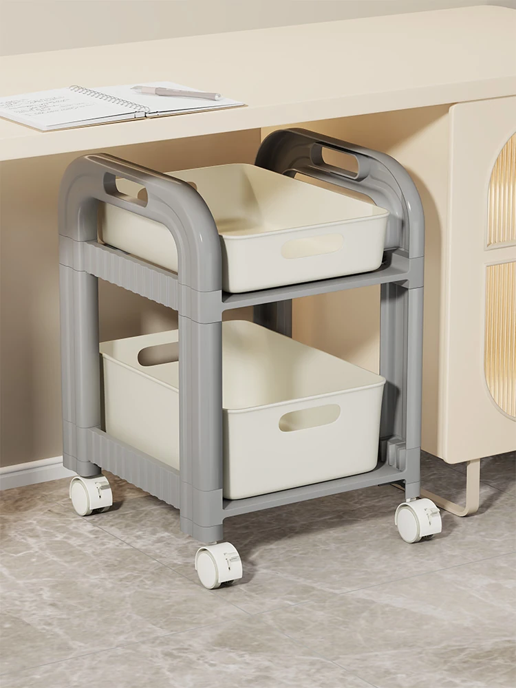 Multi-Layer Rolling Under-Desk Bookshelf - Mobile Storage Cart for Easy Organization, Perfect for Students' Desks and Small Spaces!
