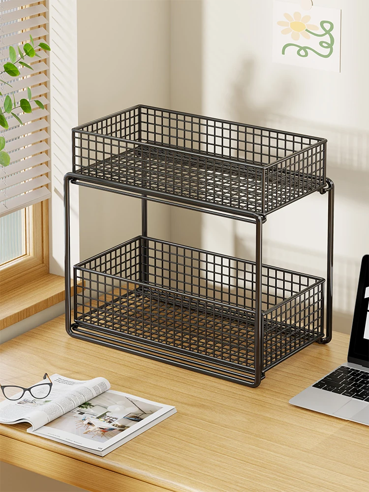 Double-Layer Desk Organizer: Stylish Bookshelf and File Storage Rack with Pull-Out Design for Efficient Workspace Organization