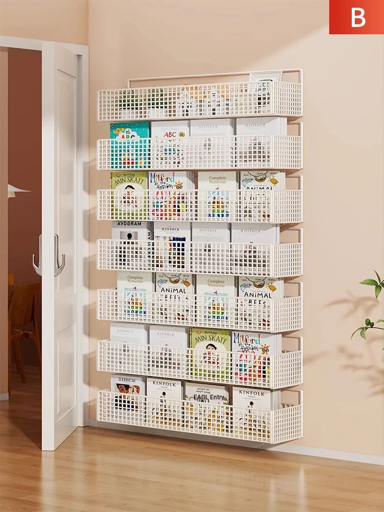 Wall-Mounted Kids' Book Shelf - No Drilling Required, Hanging Storage Rack for Children's Picture Books, Space-Saving Organizer for Doorways and Walls