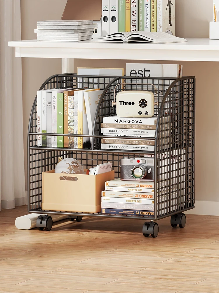Mobile Children's Desk with Wheels and Multi-Layer Iron Storage Rack - Easy-to-Move Book Cart for Under-Desk Use, Perfect for Organizing Books and Toys