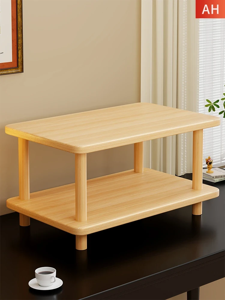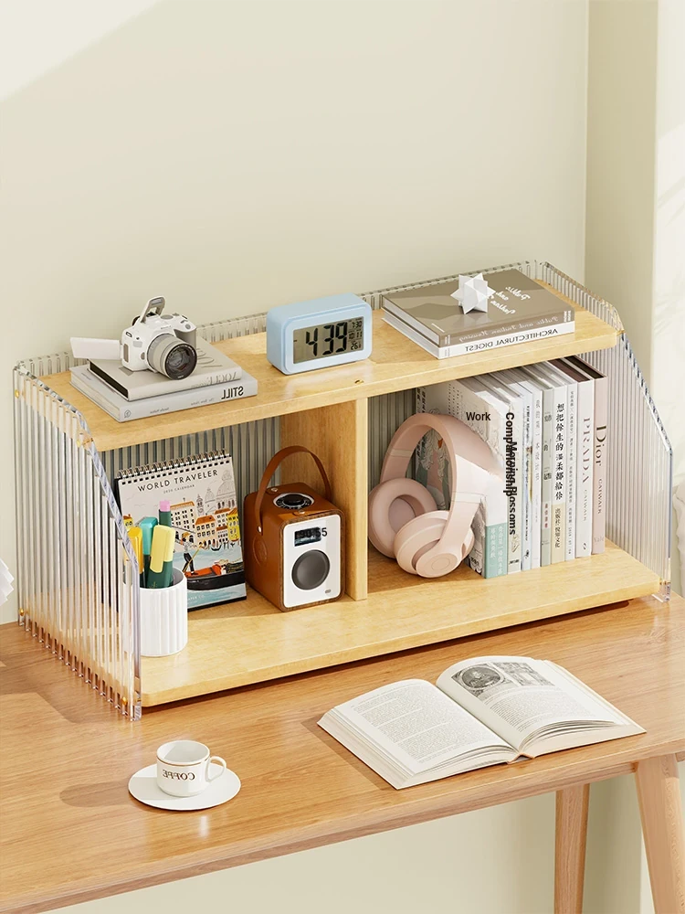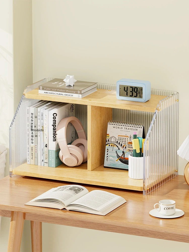 Solid Wood Desktop Bookshelf - Multi-Layer Storage Rack for Office, Dormitory, and Study Desks - Stylish and Functional Organizer for Books and Supplies