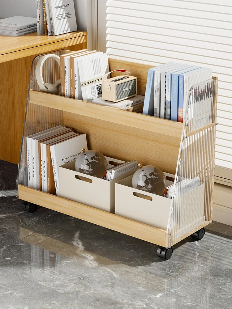 Multi-Layer Rolling Bookshelf and Storage Cart - Stylish Floor Stand Organizer for Books, Bags, and Office Supplies, Perfect for Home and Office Use