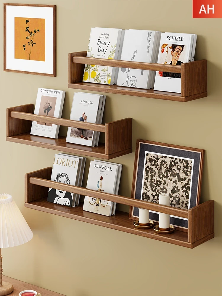 Wall-Mounted Solid Wood Bookshelf - Stylish Storage Rack for Magazines and Display Items, Perfect for Living Room Organization!
