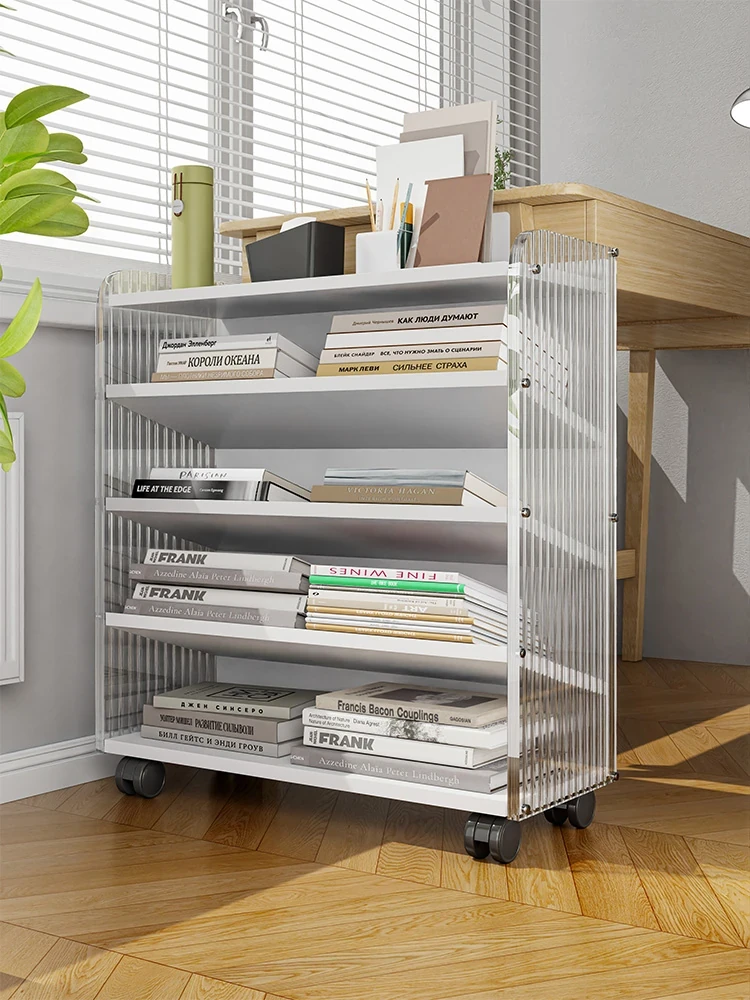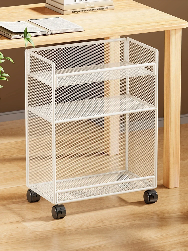 Mobile Office Storage Shelf with Wheels - Multi-Layer Book Organizer and File Management Rack for Desk and Workstation