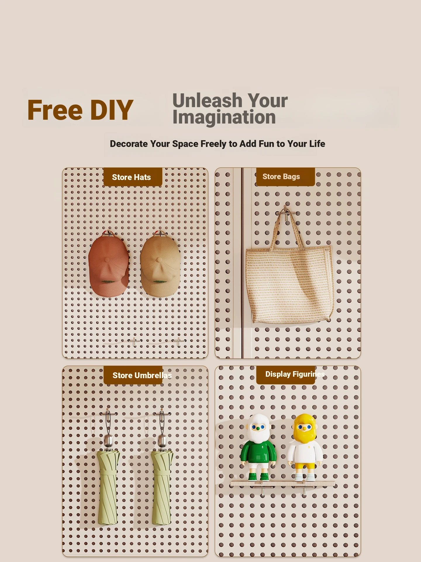 Metal Pegboard Storage Rack - Multi-Functional Wall-Mounted Organizer for Home Use, No Drilling Required, Perfect for Entryway Door Decoration and Storage Solutions