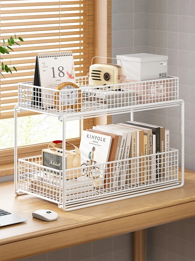 New Pull-Out Desktop Organizer - Double-Layer File Storage Rack for Office Desk, Stylish Bookshelf for Home Use, Perfect for Efficient Workspace Management