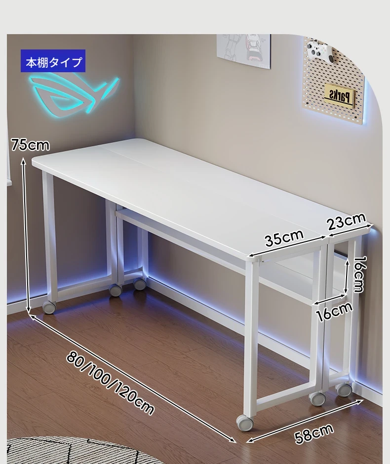 白色キャスター120*60