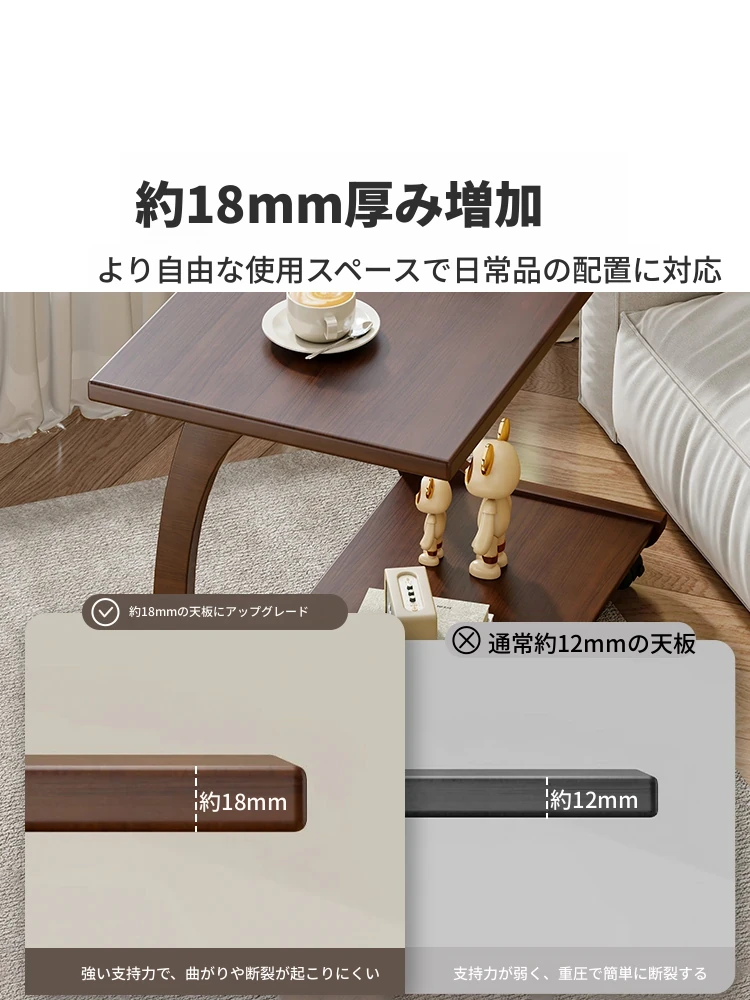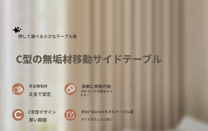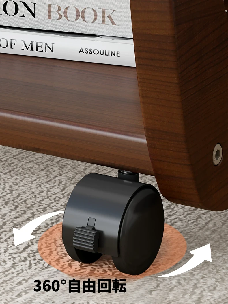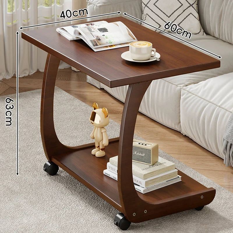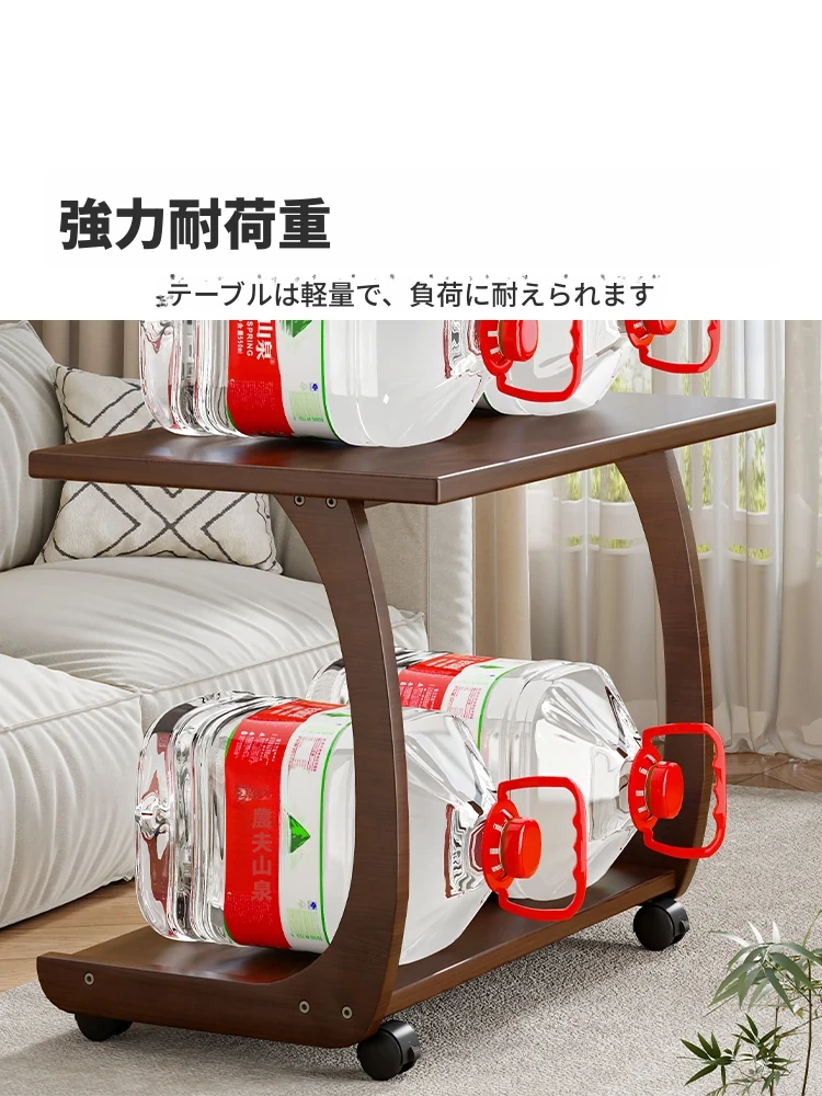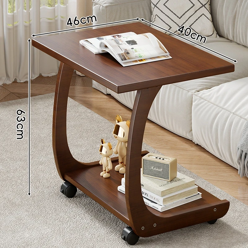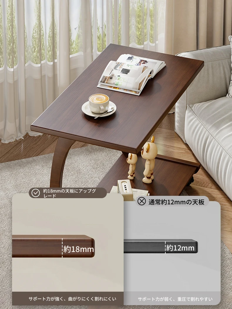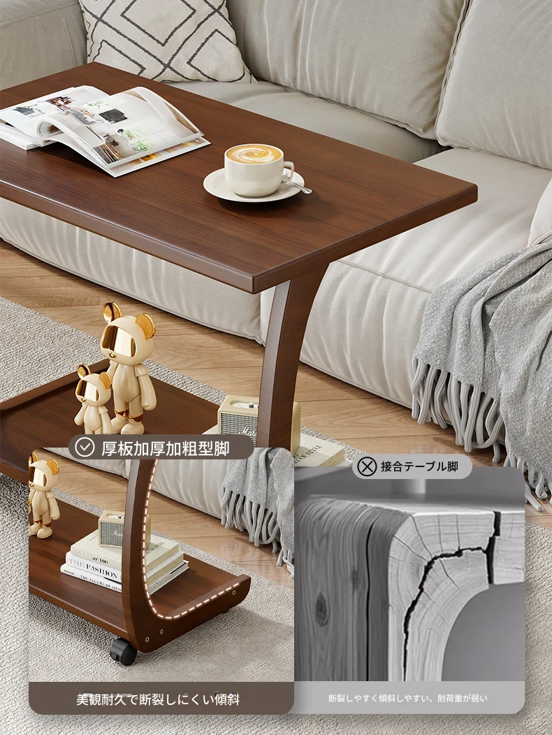 移動式無垢材ソファサイドテーブル - 車輪付きの小型リビング用ティーテーブル、ベッドサイドテーブル、コンパクトなC型サイドキャビネット。おしゃれで便利な収納スペースを提供します!