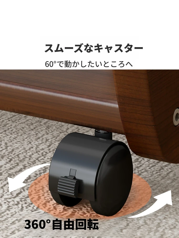 【全実木-ゴムの木】60cmウォールナット色【ブレーキ付き車輪】