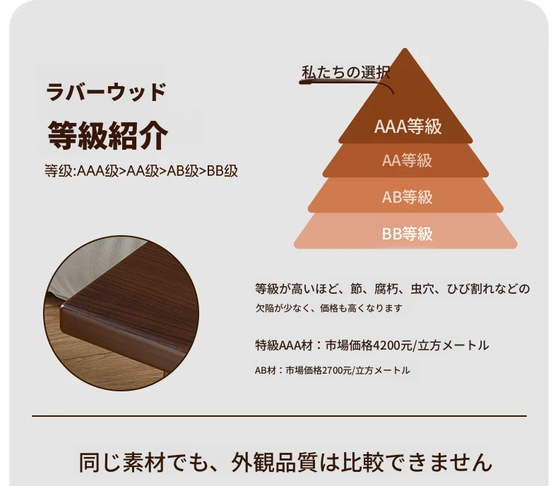 【全実木-ゴムの木】40cmウォールナット色【ブレーキ付き車輪】