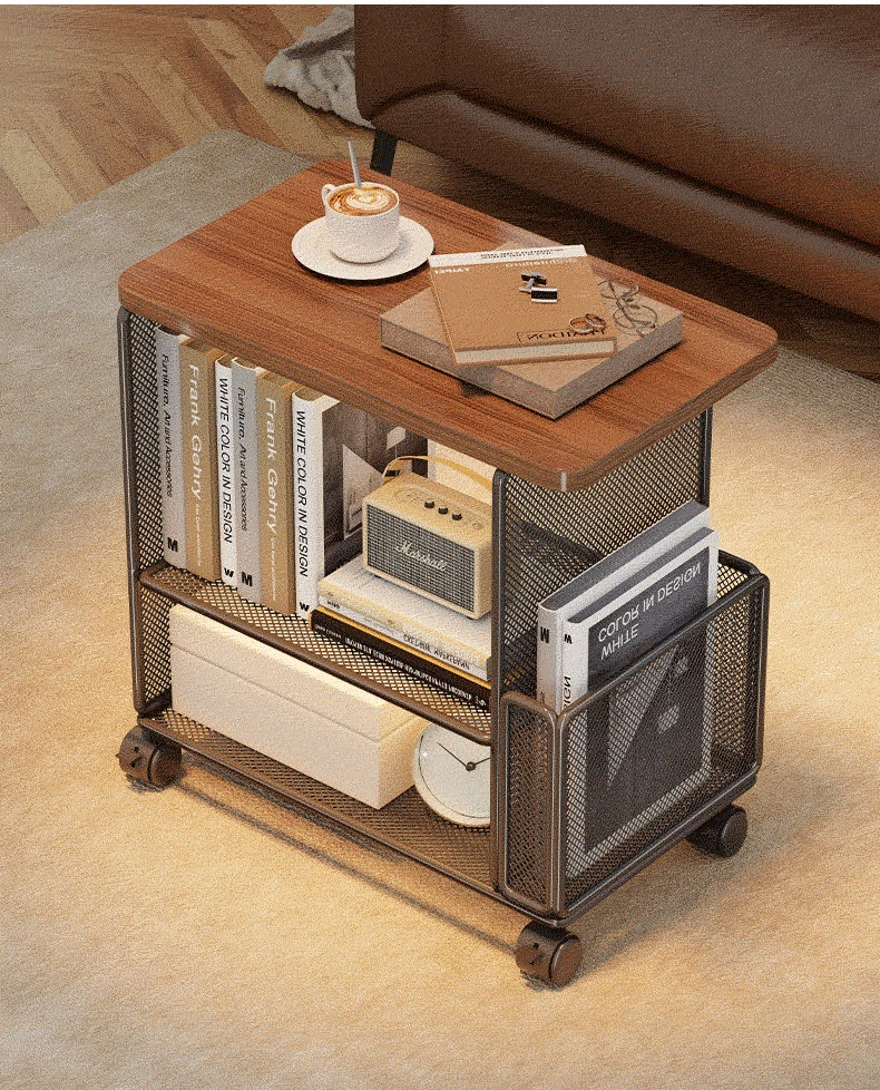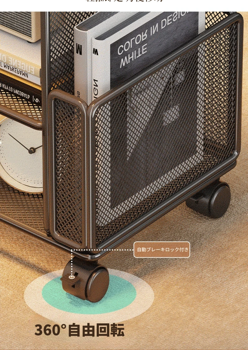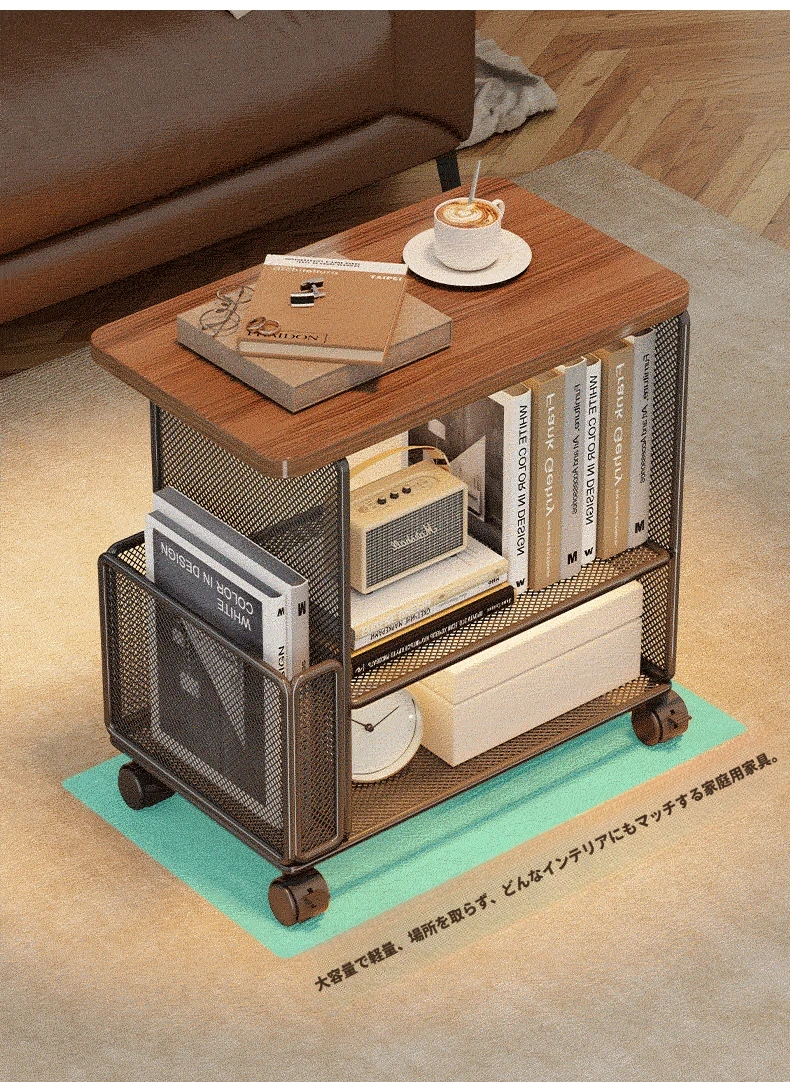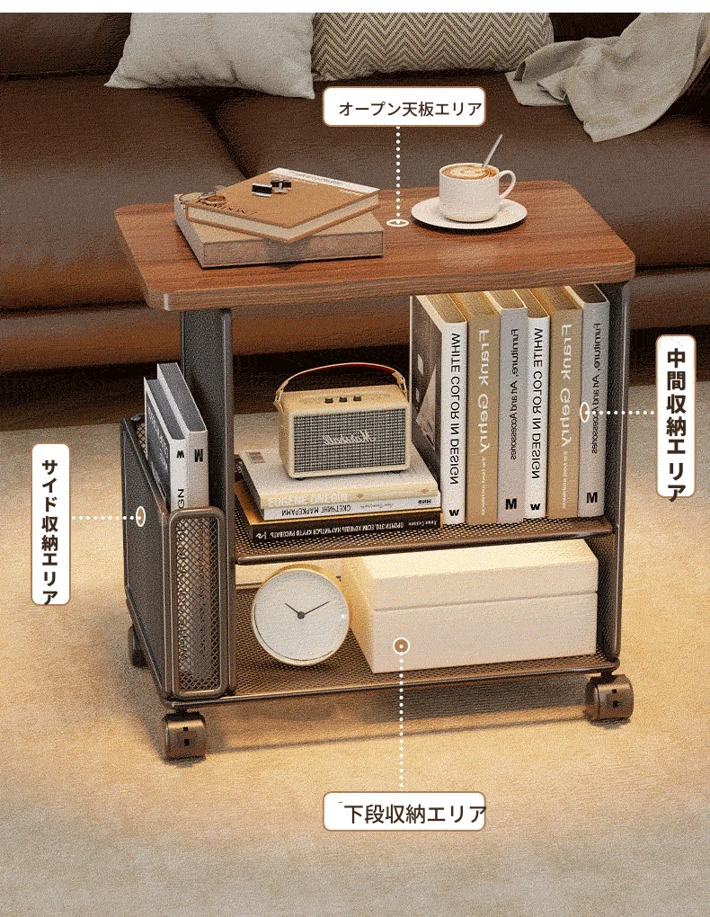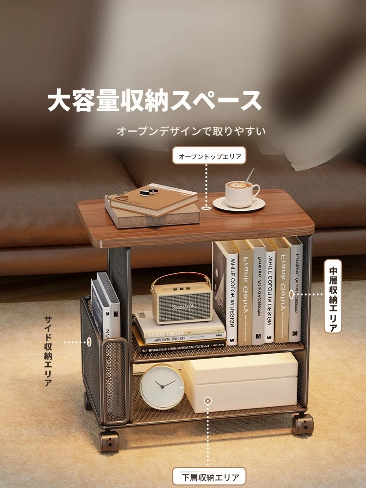 移動式ソファサイドテーブル - 軽やかなラグジュアリー感!キャスター付きの小型ワゴンで、リビングや寝室にぴったりの収納力。おしゃれにスナックや雑貨を整理整頓!